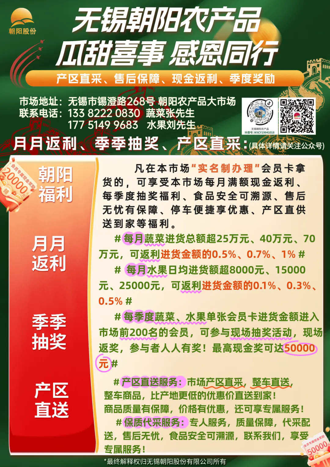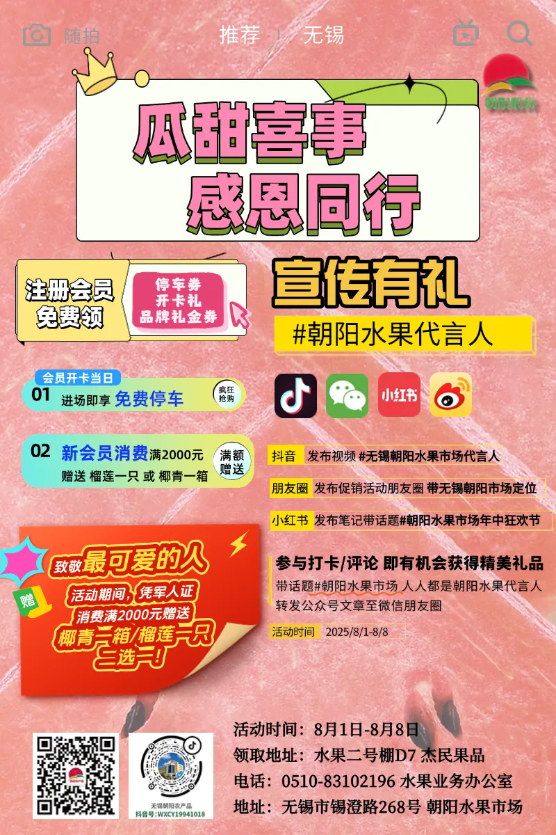 无论是为家人准备夏日解暑果,还是为致敬献上一份心意,我们都在无锡朝阳农产品大市场等您!