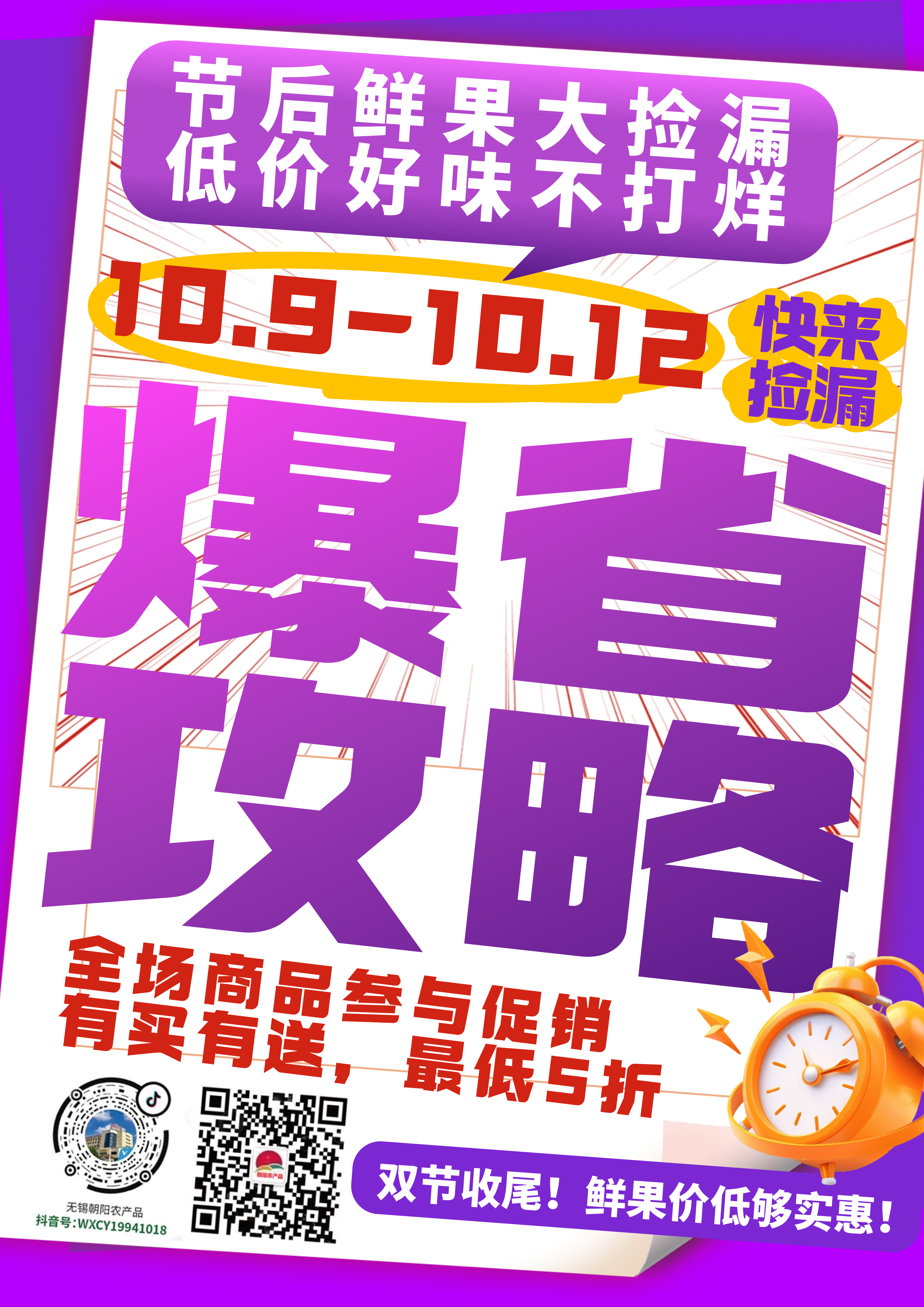 双节假期一晃而过,是不是还在想念假期里一口爆汁的鲜甜水果?别遗憾,水果市场的节后专属福利已上线 ——“节后鲜果大捡漏,低价好味不打烊”活动即将开启,10月9日-10月12日,这波省钱吃鲜的机会,可别让它溜走!