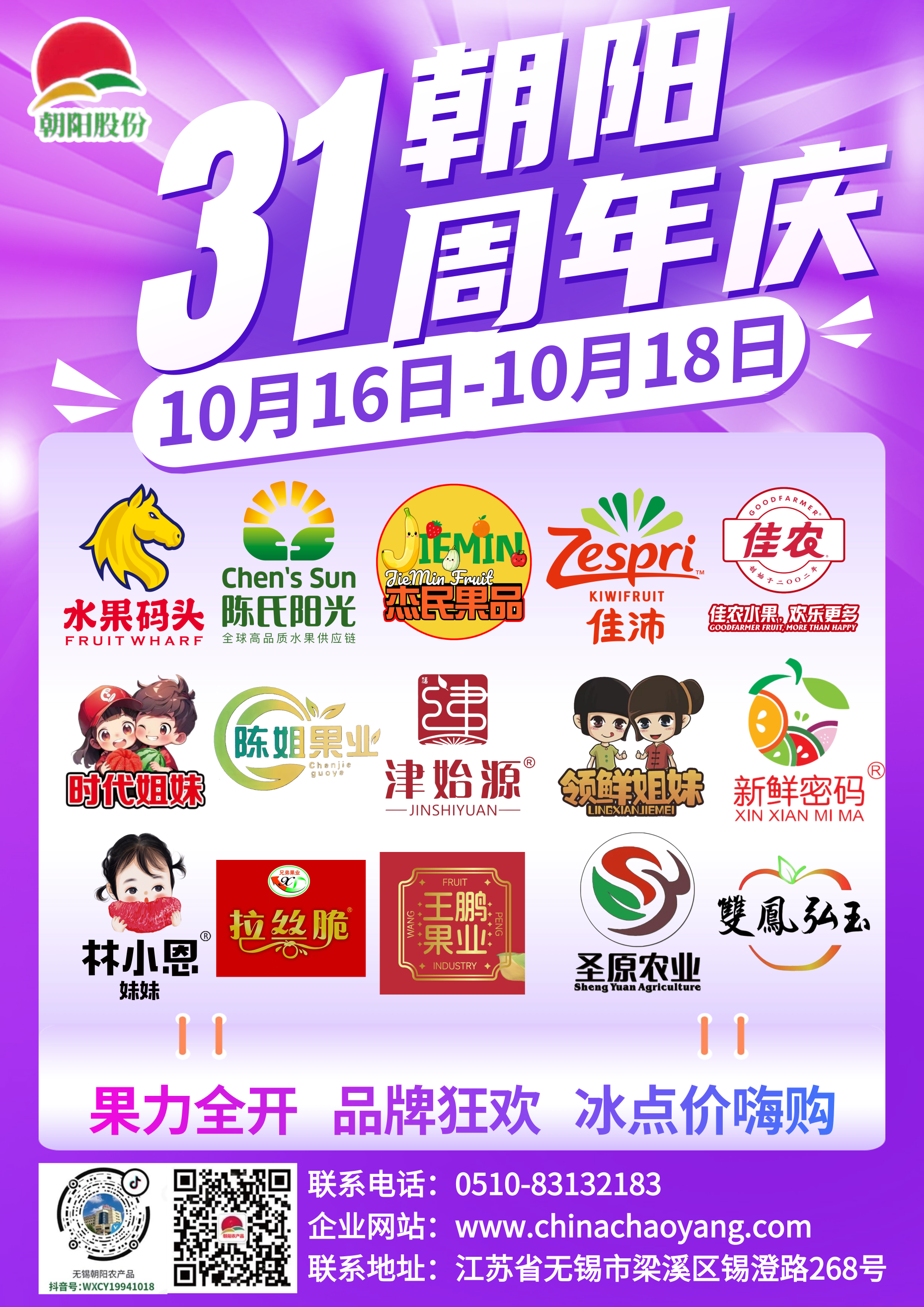 从 1994 到 2025,31 年时光流转,朝阳农产品大市场始终坚守 “让新鲜触手可及” 的初心。如今,我们即将迎来 31 周年庆,一场集结全球尖货、国内名品的品牌专属大促展销盛典,将于 10 月 16日-18 日重磅开启!这不仅是对过往 31 年的致敬,更是联合各大品牌为所有热爱水果的朋友们,打造的一场甜蜜狂欢。