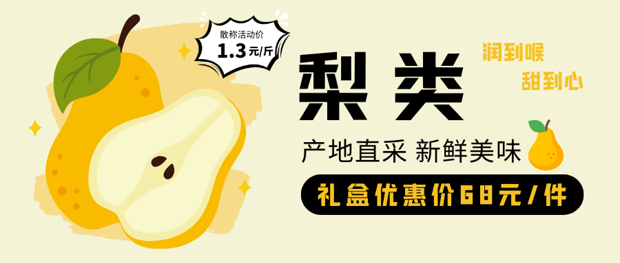 梨类:果肉细腻如凝脂,清甜多汁无渣,清热润肺超适合秋冬。促销价1.3元/斤,老人小孩都爱吃!
