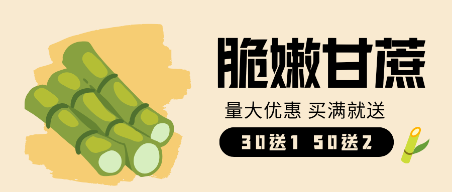 整根甘蔗:精选广西、浙江优质产区,粗壮饱满、汁水充足。独特整根销售方式,寓意 “甜蜜美满、节节高升”,双十一特惠满30件送1件,满50件送2件,西外场交易区专属供应,榨汁送礼两相宜!
