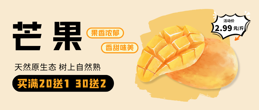 芒果:核心产区直供,果香浓郁、果肉细腻,咬一口香甜多汁。双十一特惠价低至2.99元/斤,另有满20件送1件、满30件送2件满赠活动,无论是鲜食还是做甜品都超合适!