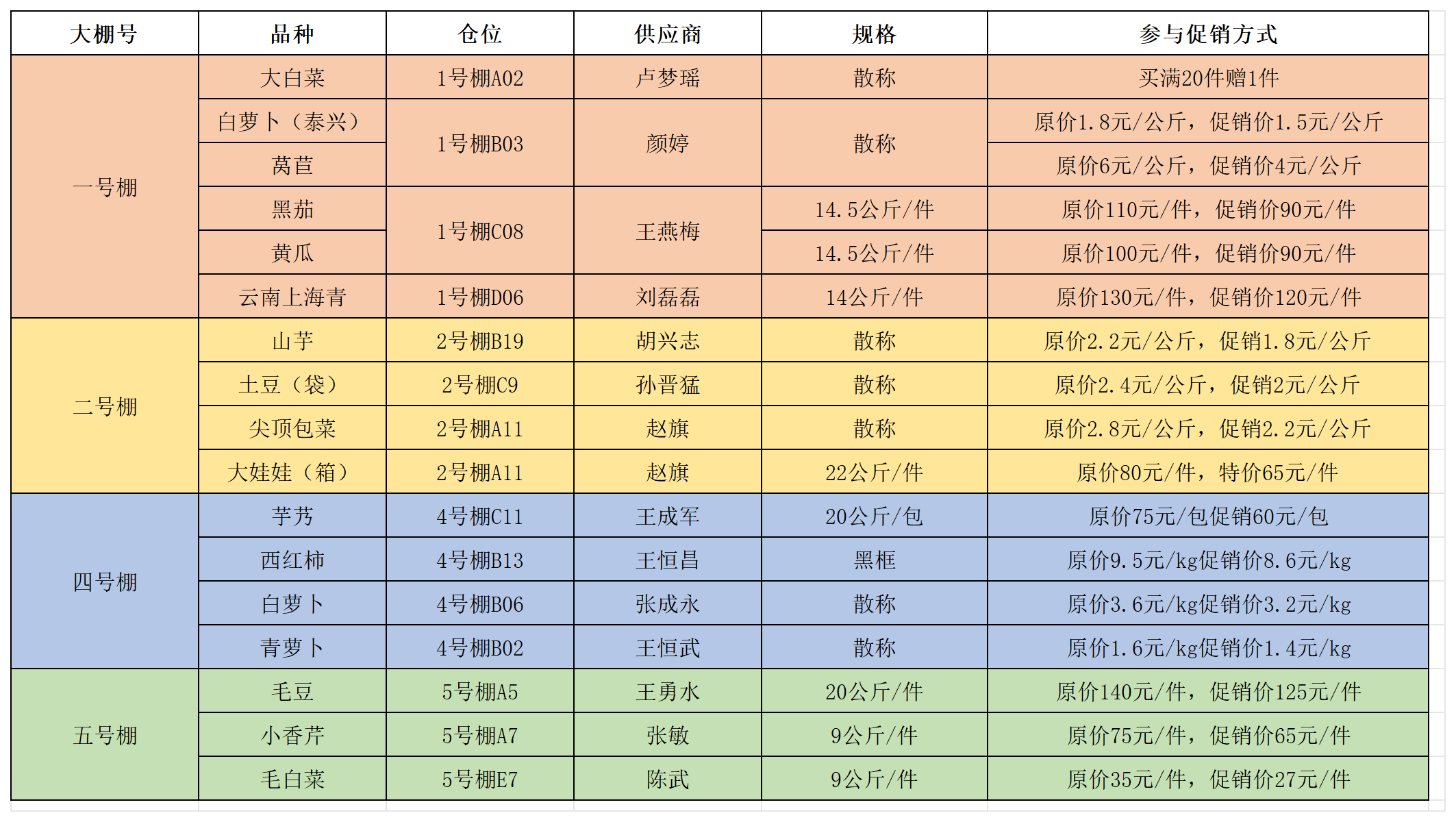 蔬菜市场参与促销商品