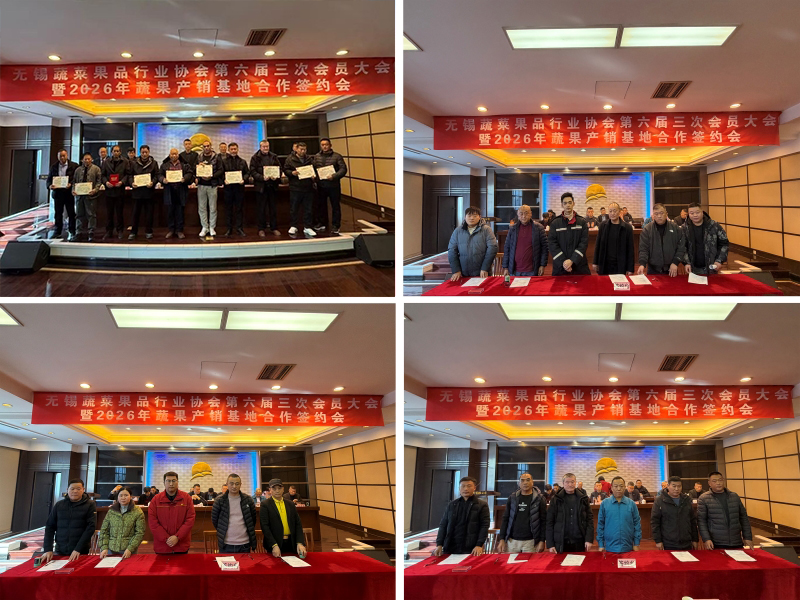 12月8日上午,无锡蔬菜果品行业协会六届三次会员大会暨2026年蔬果产销基地合作签约会在朝阳农产品大市场召开。无锡蔬菜果品行业协会会员、全国及无锡蔬果生产基地代表、蔬果行业相关单位及朝阳股份、天惠超市工作人员共167人参会。无锡日报、江南晚报、无锡广播电视台等主流媒体记者到会采访。  无锡蔬菜果品行业协会会长、kaiyun开云官方在线入口董事长、总经理张庆卿作了题为《凝心聚力促发展 守正创新谱新篇》的报告,对协会2025年工作进行了总结,并对2026年主要工作要点作了展望。他号召全体会员认真贯彻党和国家的方针政策,持续推动产销对接,加强品牌建设,努力为无锡蔬菜果品行业的繁荣与发展贡献更大力量。  大会审议并通过了《无锡蔬菜果品行业协会2025年工作小结暨2026年工作要点》《2025年协会财务报告》《2025年协会监事会报告》。 在交流发言阶段,无锡朝阳股份有限公司总经理朱健祥、无锡天惠超市股份有限公司总经理刘彦、无锡蔬菜生产基地代表戚全芳分别结合行业现状与发展趋势分享经验、建言献策,鼓励全体会员高质量推进各项工作,争取更大成果。 朝阳集团顾问、协会上届会长杨兴德对协会六届三次会员大会的召开表示祝贺。他充分肯定协会过去一年在服务行业、促进产销等方面的工作成效,并指出,当前行业发展机遇与挑战并存,协会要坚持政治引领,深入学习贯彻党的二十大关于乡村振兴、农业强国等战略部署;要强化桥梁功能,精准服务会员需求,维护行业合法权益;要聚力产业升级,推动绿色生产、科技创新与品牌建设;同时要加强行业自律与自身建设。他勉励协会和全体会员坚定信心、开拓创新,为无锡蔬果行业高质量发展和新时代工商名城建设贡献更大力量。 在2026年蔬果产销基地合作签约会上,朝阳股份对2025年产销合作中的优秀单位进行了表彰。朝阳农产品大市场与全国蔬果生产基地、天惠超市与无锡本地蔬菜生产基地分别签订了新一年的产销合作协议。本次签约基地数量共计88个,签约总面积15.2万亩,同比上升36.12%,签约总上市量40.2万吨,同比上升31.52%。其中,天惠超市签约基地38个,与去年持平;签约基地面积680.5亩,同比上升1.8%;签约上市量7735吨,同比上升6.28%。